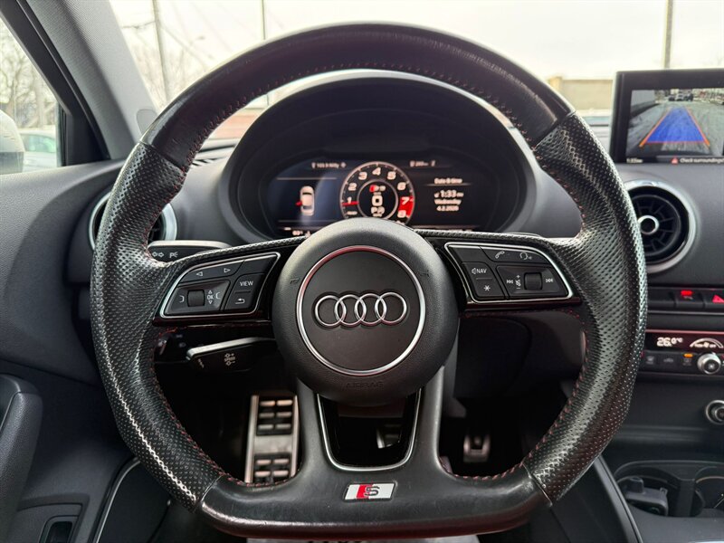 2017 Audi S3 2.0T quattro Technik — Gray exterior with Red leather interior. This vehicle is in excellent overall condition and comes with a clean CARFAX.